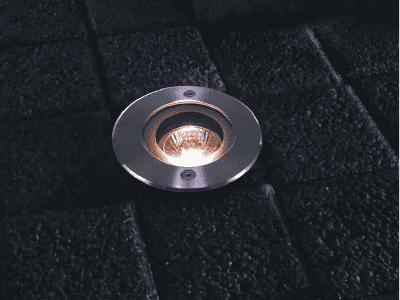 地中埋込み型照明は、配線が見えないのでスッキリとできます。埋込み型で足元が照らされるため転倒防止につながるほか、下から上に向けた光が空間のアクセントにもなります。