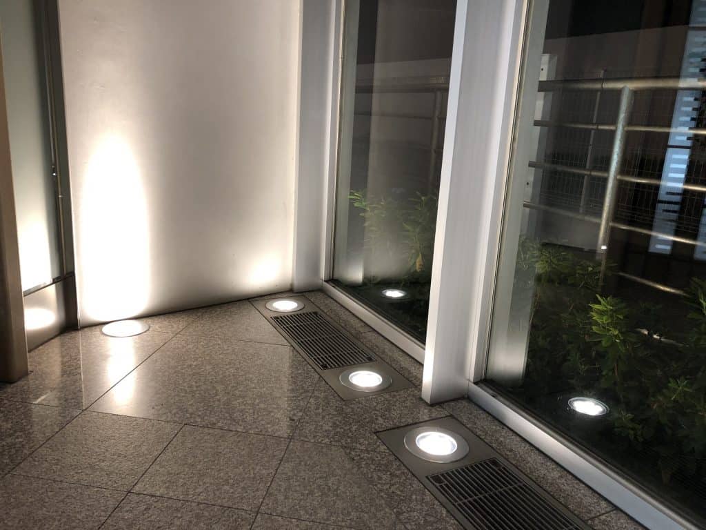 ホテルの入口などの場所へ12Wウッドデッキ地中照明を導入しました。