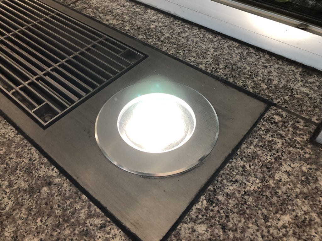 既設器具が生産終了になっていたため、代替え器具として富士メディシィエの地中照明を導入して頂きました。簡単に設置できるように、現場の開口径をそのまま活かせる寸法の器具をご提案させて頂きました(開口径Φ156mm、器具直径Φ173mm)。ラインナップの豊富さは、富士メディシィエの強みです! 寸法や明るさなど、ご要望にぴったりの器具をご紹介させて頂きますので、是非ご相談ください。