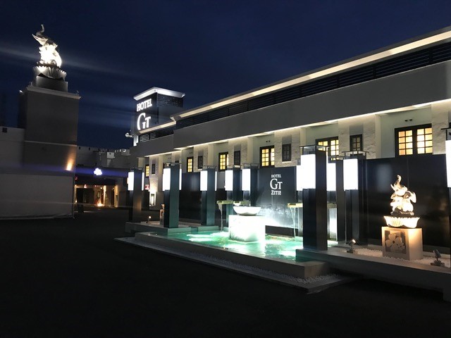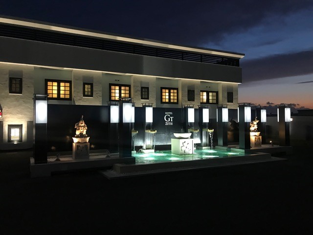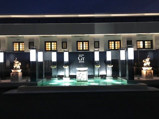 【水中照明】サン産業株式会社 ホテルのエントランスにある水盤への導入事例