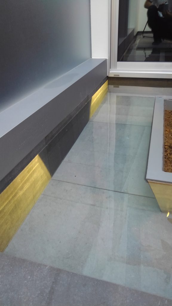 開放的な駐車場でライト上に駐車しでも大丈夫なLED地中埋込照明を導入しました。