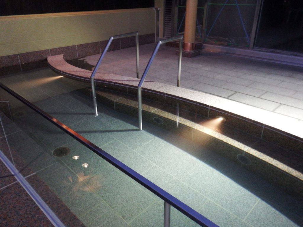 埋込型の水中照明器具は、露天風呂だけでなく室内風呂にもおすすめです。佐賀県の某ビジネスホテルでは、大浴場にLED水中照明を設置。お風呂全体を優しく照らせるようになり、高級感が出ました。またお風呂全体が明るくなるので、転倒防止にも繋がります。