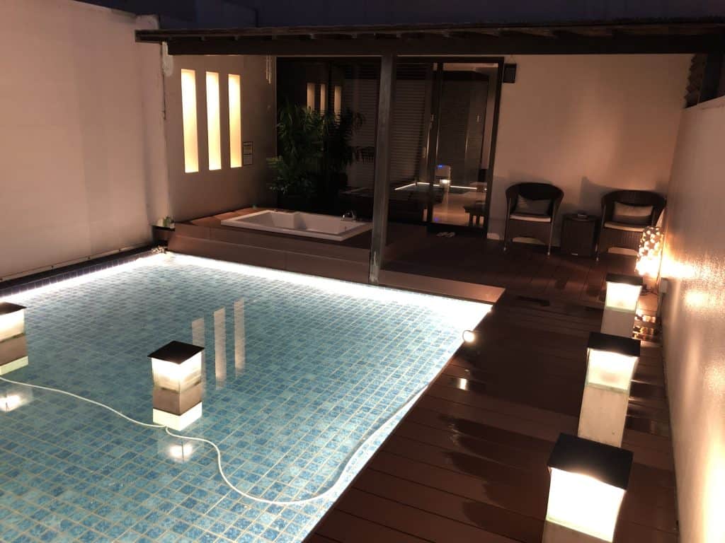 そんなインフィニティ風呂を、さらに幻想的な空間にするためには照明が必要不可欠です。照明ひとつで夜の印象が変わり、人を惹きつける効果もあります。