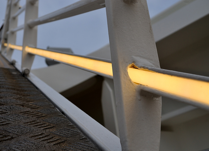 よい例が階段横の手すりの裏または下面を設置します。ライン状の光源は階段のような線上に移動する場所に最適で,きれいに光が伸びた感じが場所的にぴったりです。おしゃれにデザインされたオフィス階段の雰囲気を盛り上げてくれることでしょう。