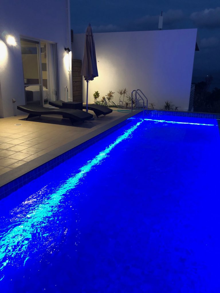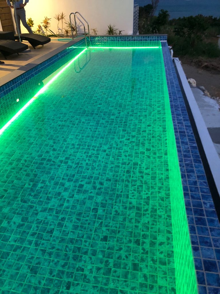 今回はたった20万円以下(税込)で実現できるLED水中テープライトを使ったプールのカラー演出例をご紹介します。
