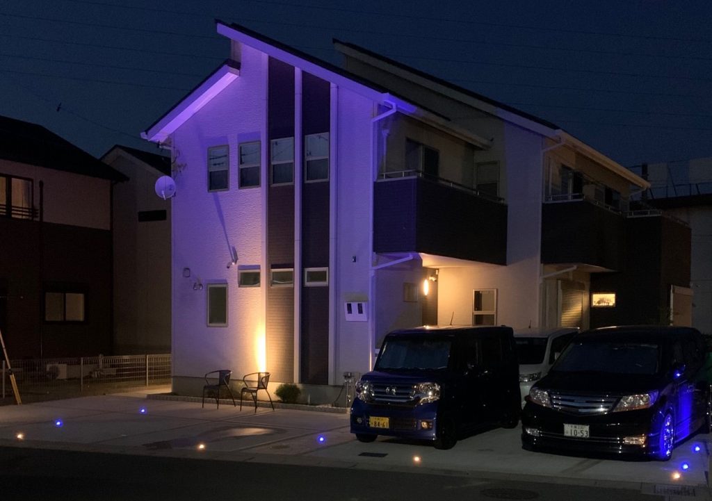 個人住宅の駐車場に地中埋込型照明を導入して頂きました。電球色と青色の2色を使い、まるでお店のようなオシャレな駐車場に仕上がりました。水中・地中ともに青色は人気があり、多くのお客様から問い合わせを受けております。サンプルのご用意もございますので、ぜひ一度お問い合わせください!