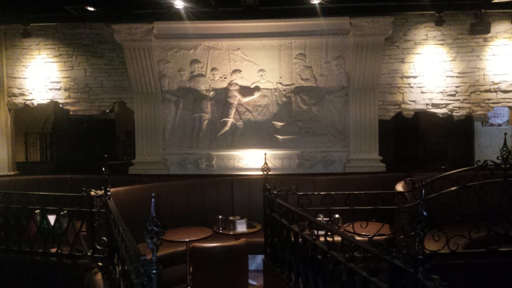 埼玉県草加市「VISCONTY」様36W置き型水中照明 [色温度:RGB 配光角度:30° 台数:1台]36W置き型水中照明(RGBタイプ)をアッパーライトとして使用して、飲食店内の壁にあるオブジェをライトアップしました。RGBタイプの器具なので、季節や店内の雰囲気に合わせて様々なカラー演出が可能です(写真では黄色に設定しています)。(埼玉県草加市「VISCONTY」様)【導入器具詳細】■36W置き型水中照明 型番:FCB5ZA0604-RGB-30 配光角(光の角度):30度 色温度(光の色):RGB 台数:1台
