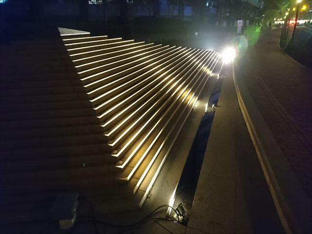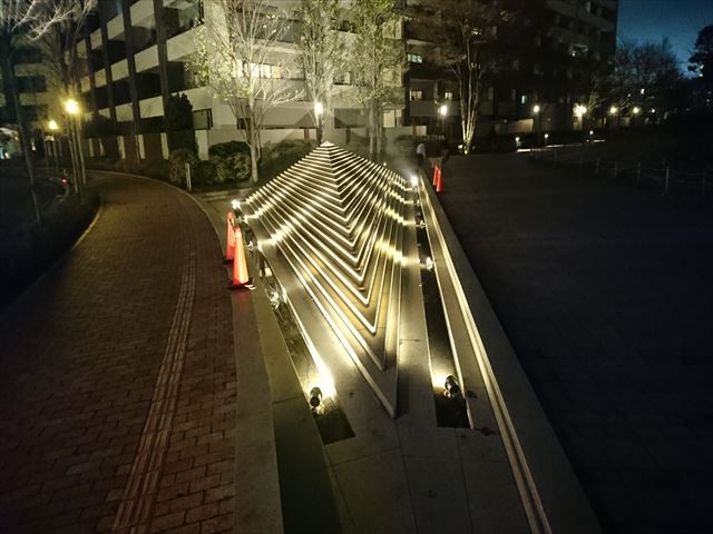 複合開発シティ内のマンション「リボンシティレジデンス様」(埼玉県川口市)の屋外水盤に、既設器具の代替として置き型水中照明を設置しました。ピラミッド状の階段を水がゆるやかに流れる「シティリンク」と、水面に映る光の揺らぎを楽しむことのできる「アクアブルー」の2箇所の水盤に使用しました。マンション全体の高級感・癒しの演出としてだけでなく、間接照明として子どもも多い歩行者の皆様の安全にも役立っています。