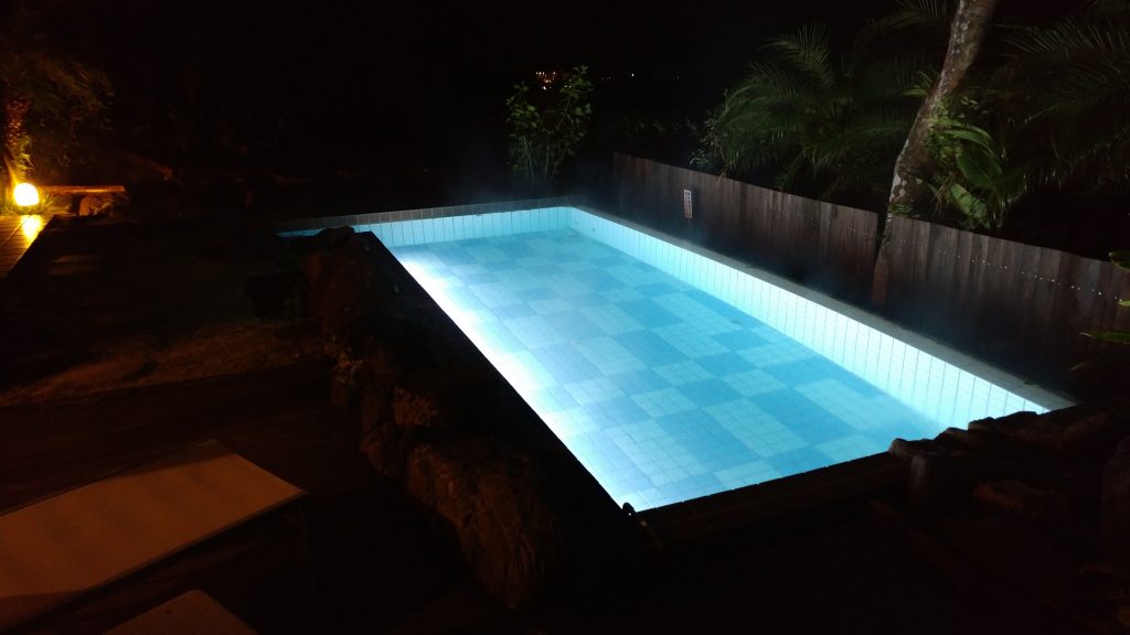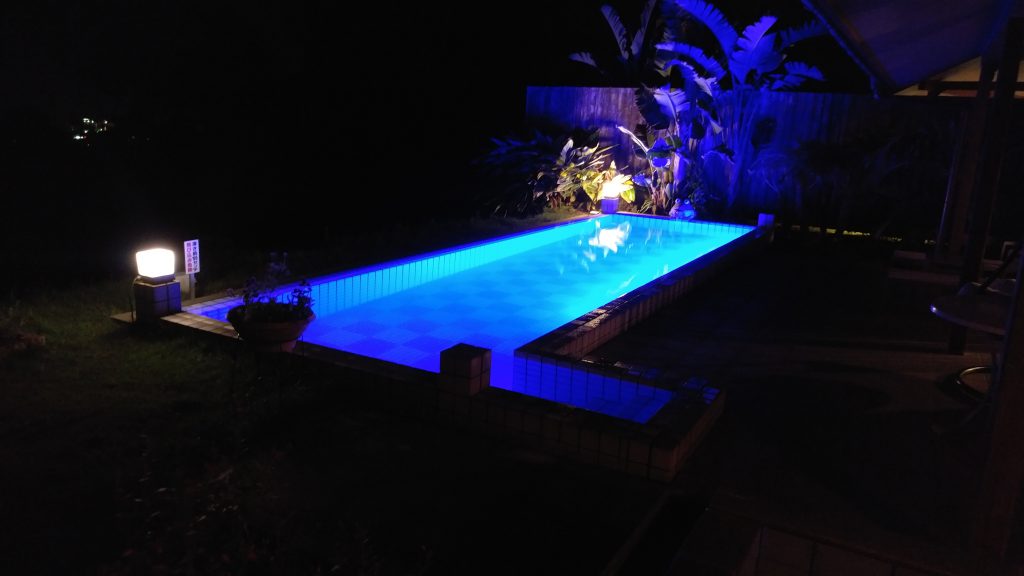 鹿児島・指宿温泉にある全室露天風呂付きの離れ宿「悠離庵」様の屋外プールに、水中テープライトを導入して頂きました。青色と昼白色(6500K)の2タイプをお部屋の雰囲気に合わせて設置しています。癒しや非日常感を求めてご来館されるお客様に、夜でもプールサイドで優雅な時間を過ごして頂くことができるようになりました。