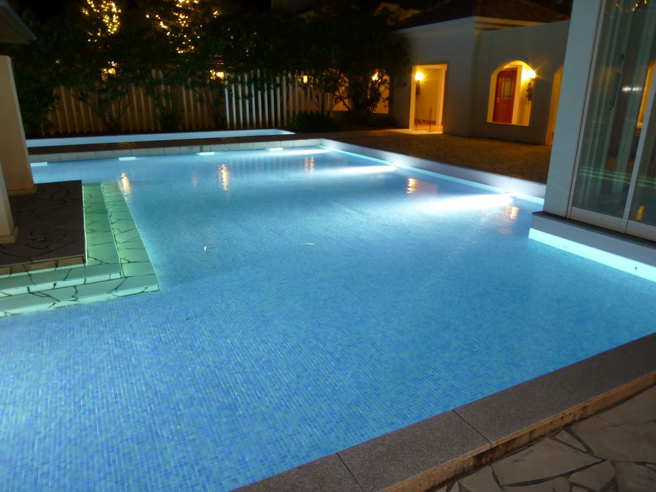 結婚式場のプールに設置されていた松下電工製壁面埋込水中照明器具(YAXH72991)の代替として、富士メディシィエ製36W壁面埋込型水中照明器具を設置しました。