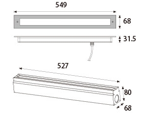 ライン状のアッパーライト演出が可能で、サイドに光を集めて照らすことができるバータイプの地中埋込型照明器具です。強い光がでるタイプのためアッパーから壁面を照らせば、奥行きのある空間演出ができます。