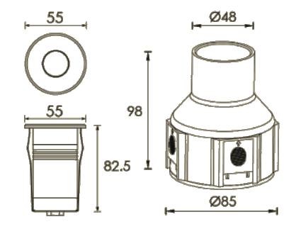 強い光のアッパーライト演出が可能で、斜めに光を放つのが特徴の地中埋込型照明器具です。壁面を照らせば、奥行きのある空間演出ができます。またアッパーから照らす防犯灯としてのご利用もおすすめです。