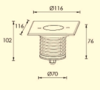 強い光のアッパーライト演出が可能で、斜めに光を放つのが特徴の地中埋込型照明器具です。壁面を照らせば、奥行きのある空間演出ができます。またアッパーから照らす防犯灯としてのご利用もおすすめです。