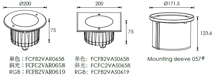 | 型番 | 単色: FCFB2VAR0658(ラウンド) FCFB2VAS0658(スクエア) 斜光: FCFC2VARO658(ラウンド) FCFC2VASO658(スクエア) RGB: FCFB2VAR0619(ラウンド) FCFB2VAS0619(スクエア) |