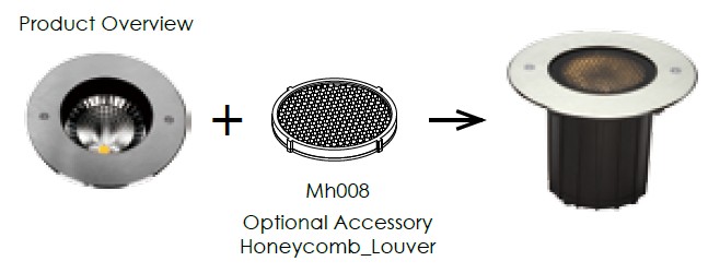 1つのレンズで照らす、強い光を放つ高出力タイプの地中埋込型照明器具です。住宅の表札や壁面文字等をアッパーから照らすことで、文字だけを際立たせるデザイン性の高いライト演出ができるだけでなく、昼間は照明器具が表札や壁面文字のデザインを邪魔することがないためスッキリした空間に演出することができます。