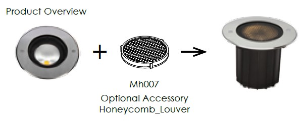 1つのレンズで照らす、強い光を放つ高出力タイプの地中埋込型照明器具です。住宅の表札や壁面文字等をアッパーから照らすことで、文字だけを際立たせるデザイン性の高いライト演出ができるだけでなく、昼間は照明器具が表札や壁面文字のデザインを邪魔することがないためスッキリした空間に演出することができます。