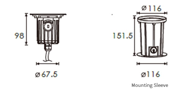 | ケーブル | ゴムシーケーブル 器具外0.5m DC24V:1.0mm²×2芯 AC100V:1.0mm²×3芯 |