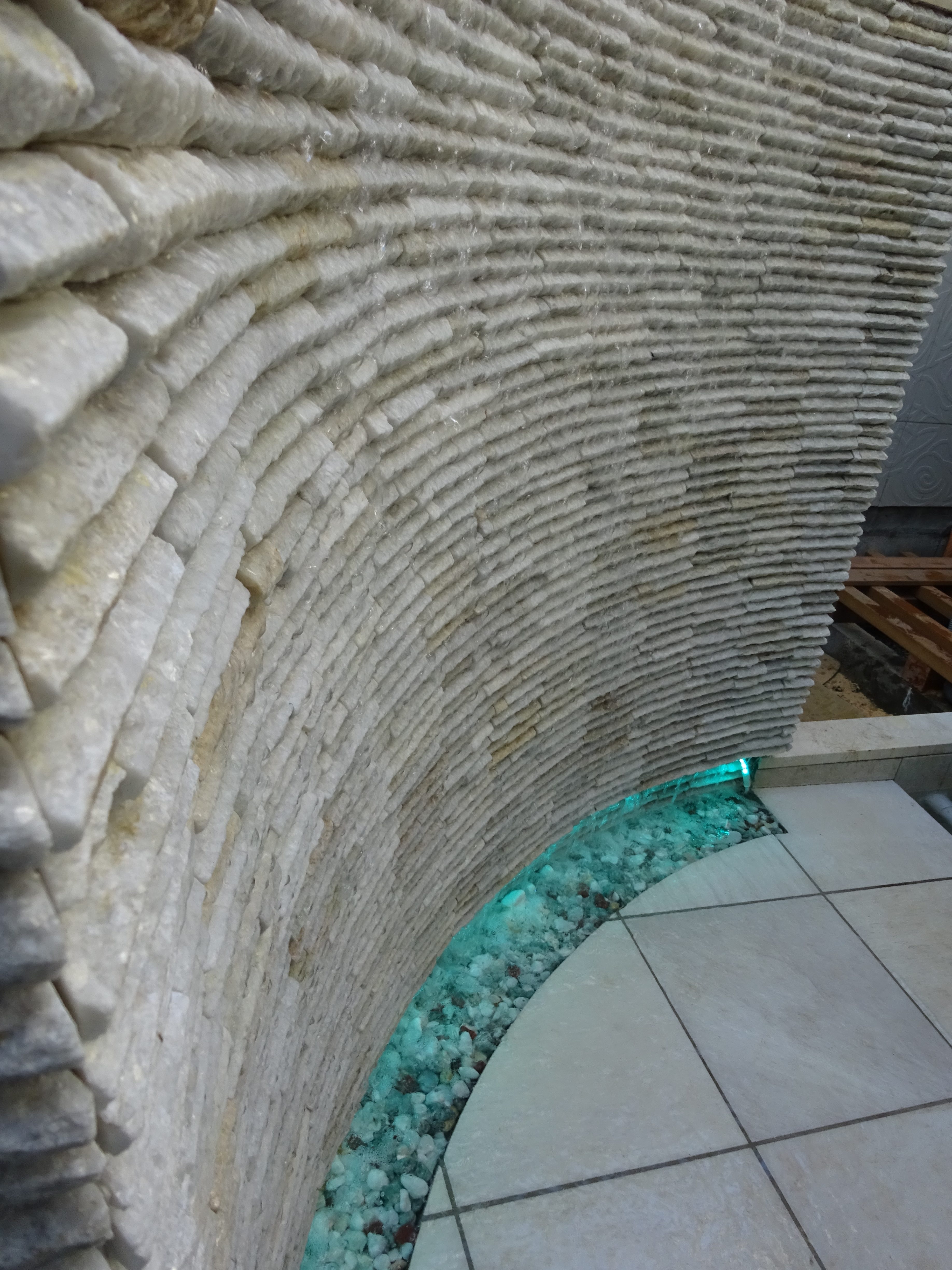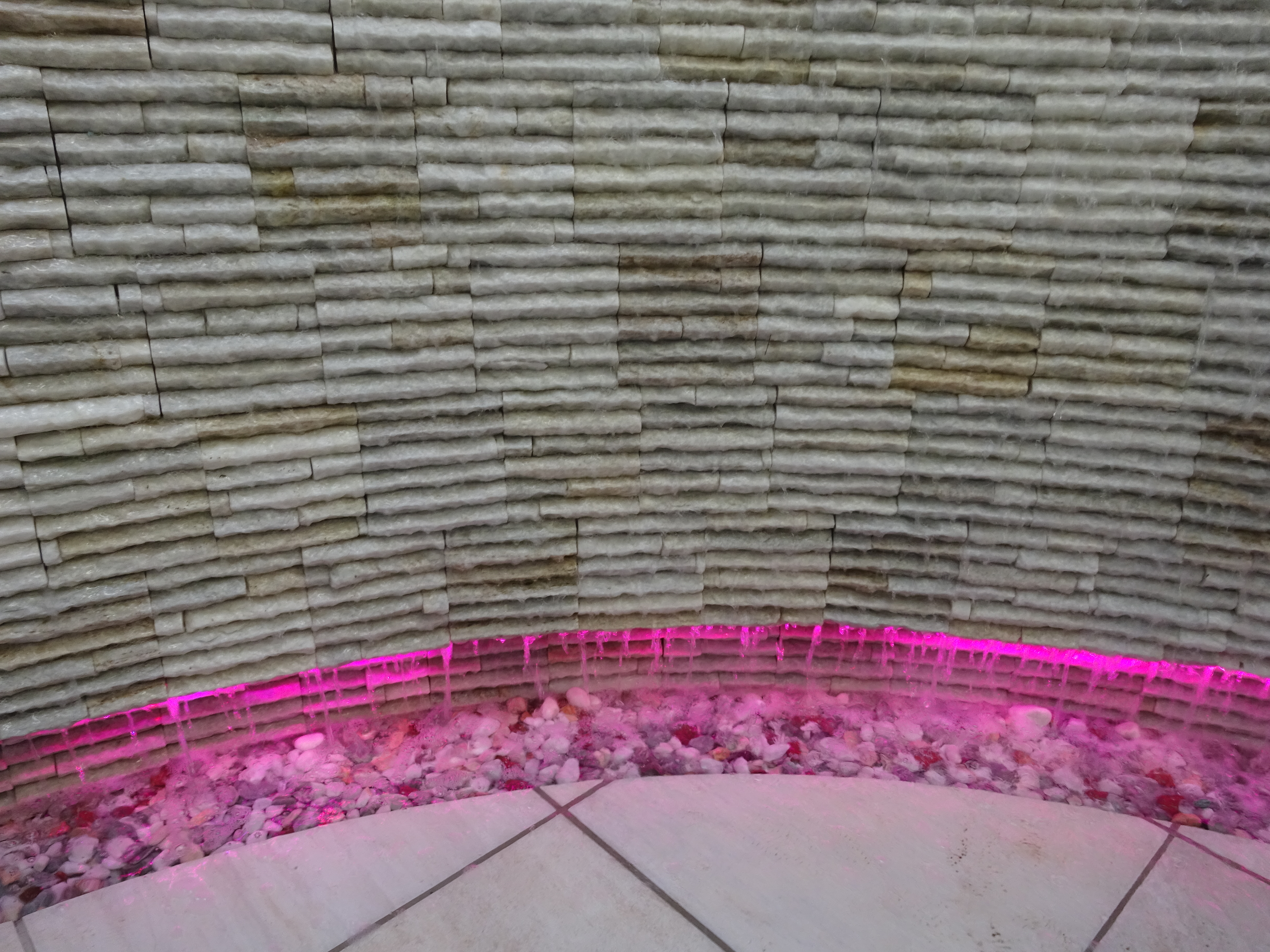 工事の中で、「浴槽にカラー演出ができる水中照明を導入したい」「外の、壁面に水が流れる滝にライン上のカラー演出ができる水中照明を導入したい」というお客様からのご要望があったためです。