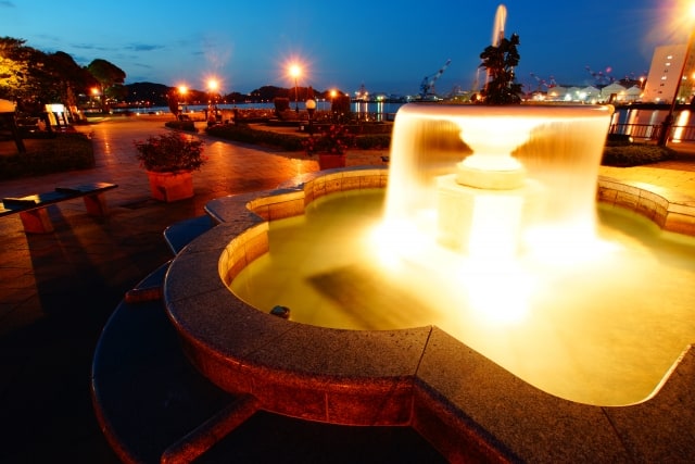 噴水と照明の相性は抜群!夜の営業があるなら絶対に設置しよう